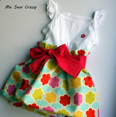 Easy bubble dress (free) - What makes this Me Sew Crazy dress simple, is that it's really a bubble skirt attached to a onesie or a t-shirt. This project could be completed in the space of a nap and really improve a boring old top.
